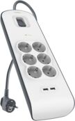 Сетевой фильтр Belkin 6хТип F, 2xUSB-A, 16А, защитой от перенапряжения (BSV604VF2M-V2)
