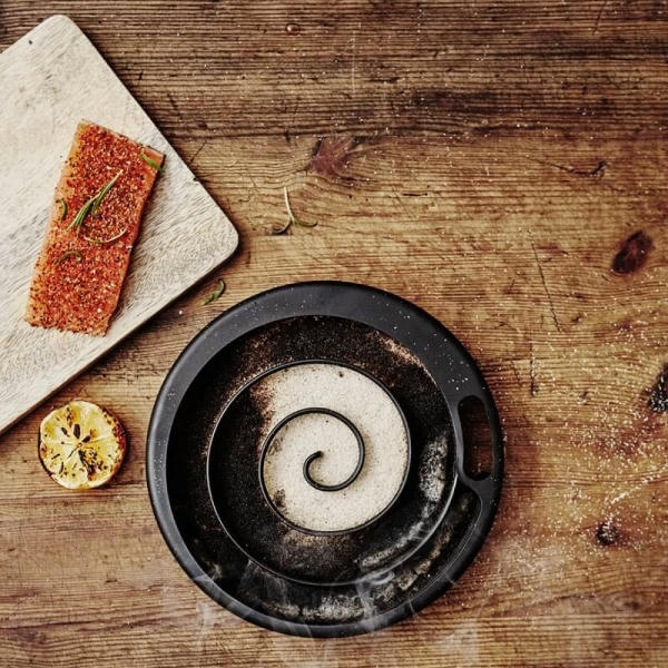 Улитка для холодного копчения Weber - простое и гениальное изобретение, чтобы превратить любой гриль в инструмент холодного копчения. Все, что нужно, - засыпать опилки (в комплект не входят) в чашу генератора дыма и поджечь с внешней стороны. Опилки будут постепенно тлеть в течение 8-10 часов, придавая блюду аромат копчения. Следует отметить, что аксессуар является полностью самостоятельным и не требует дополнительной подпитки брикетами или углем.