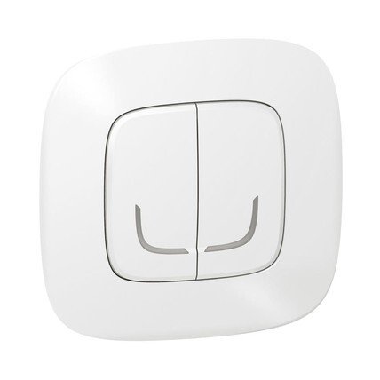 Умный беспроводной двухклавишный выключатель является элементом системы домашнего комфорта Legrand. Для его работы нужно предварительно купить и установить стартовый пакет умного дома.