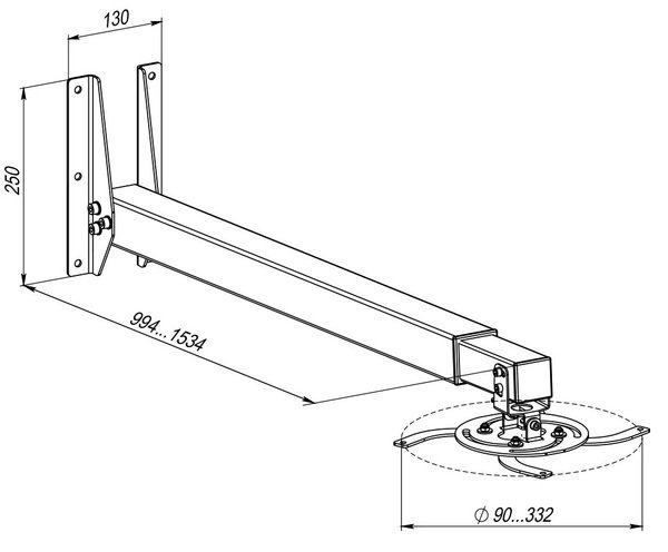 - Выдвижение от центра несущего кронштейна - от 960 до 1500 мм