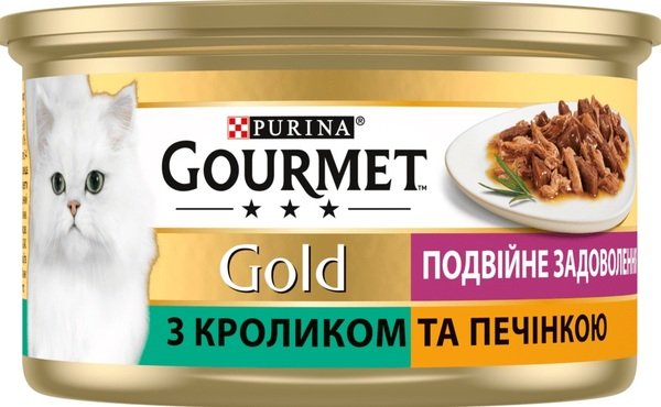 - Упаковка влажного корма для котов Gourmet Gold с кроликом и печенью 24*85 г