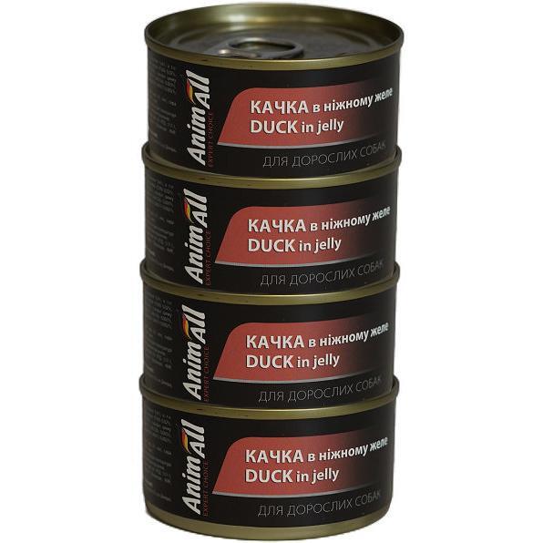 - Упаковка влажного корма для собак AnimAll утка в нежном желе 4х85 г