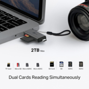 Благодаря двум слотам для карт вы можете легко передавать данные с карт SD и microSD одновременно или с одной карты на другую. UA430D совместим с картами UHS-I, что позволяет быстро перемещать большие файлы с карт со сверхбыстрой скоростью считывания данных до 200 МБ/с.