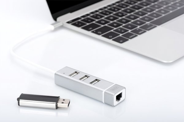 USB Хаб DIGITUS Type-C, 3xUSB, Fast Ethernet (DA-70253)