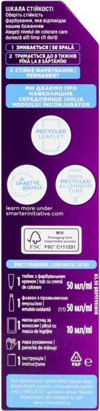 Высокоинтенсивные пигменты инновационной формулы глубоко проникают в структуру волос. До 100% окрашивания седины. Защита от вымывания цвета в течение нескольких недель.
