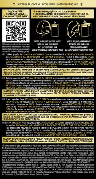 | Состав | Aqua (Water, Eau), Cetearyl Alcohol, Ethanolamine, Toluene-2,5-Diamine Sulfate, Coconut Alcohol, Sodium Laureth-6 Carboxylate, Sodium Myreth Sulfate, Bis-Diisopropanolamino-PG-Propyl Dimethicone/Bis-Isobutyl PEG-14 Copolymer, Resorcinol, Acrylamidopropyltrimonium Chloride/Acrylates Copolymer, Coco-Glucoside, Paraffinum Liquidum (Mineral Oil, Huile Minérale), Ceteareth-12, Ceteareth-20, Glyceryl Oleate, Parfum (Fragrance), Potassium Hydroxide, 2,4-Diaminophenoxyethanol HCl, Sodium Sulfite, m-Aminophenol, Sodium Silicate, Etidronic Acid, Ascorbic Acid, Ceteareth-50, Sodium Chloride, Polysorbate 20, Butyloctanol, Citric Acid ·Phenoxyethanol, Citronellol, Sodium Benzoate, Benzyl Alcohol, Alpha-Isomethyl Ionone, Lactic Acid, Methylparaben, Ethylparaben |