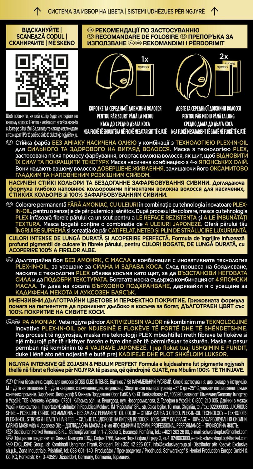 | Состав проявителя | Aqua (Water, Eau), Paraffinum Liquidum (Mineral Oil, Huile Minérale), Hydrogen Peroxide, Cetearyl Alcohol, PEG-40 Castor Oil, Sodium Cetearyl Sulfate, Etidronic Acid, Potassium Hydroxide, 2,6-Dicarboxypyridine, Disodium Pyrophosphate, Sodium Benzoate, Sodium Sulfate |