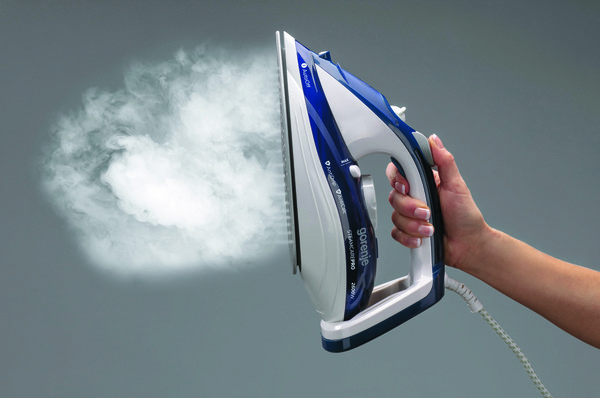 Вы всегда можете регулировать подачу пара, увеличивая или уменьшая ее силу. Для устранения наиболее поддающихся складок применяйте мощный паровой удар с максимальным количеством горячего пара. Держа утюг в вертикальном положении, вы сможете с помощью пары устранить складки на одежде, висящей на плечиках, а также на шторы, портьеры.