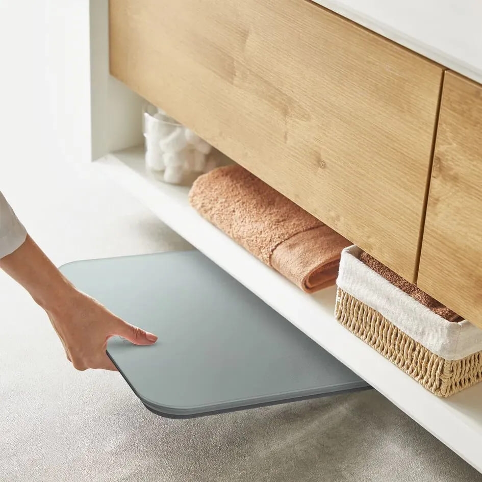 Ультратонкий дизайн (высота 2,2 см) со стильной стеклянной платформой позволяет легко и незаметно хранить весы, когда они не используются.
