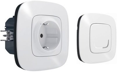 - Коллекция умных устройств Valena Allure with NETATMO. Пакет для управления бытовыми электроприборами. Умная розетка 2К+З 16А 230В + умный беспроводной 1-клавишный выключатель.