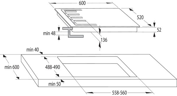 | Размеры для встраивания (ШхГ), мм | 560x490 |