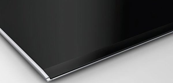 Варочная панель имеет строение по типу домино: ее прямоугольная форма с точеными углами идеально вписывается в концепцию современного геометричного стиля в интерьерных решениях. Черный цвет стеклокерамики, из которой выполнена модель, стал залогом самодостаточного и универсального внешнего вида. Обрамление придает технике завершенный вид.