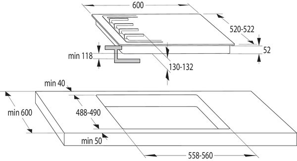 | Размеры для встраивания (ШхГ), мм | 560х490 |