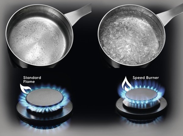 Горелка Speed Burner варочной поверхности Electrolux разработана для быстрого разогрева дна кастрюль и сковород. Помимо более быстрого и мощного нагрев это дает до 20% экономии энергии.