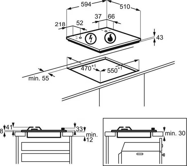 | Размеры для встраивания (ШхГ), мм | 550х470 |