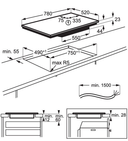 | Размеры для встраивания (ШхГ), мм | 750х490 |