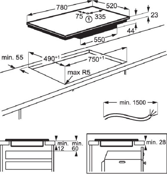 | Размеры для встраивания (ШхГ), мм | 750х490 |