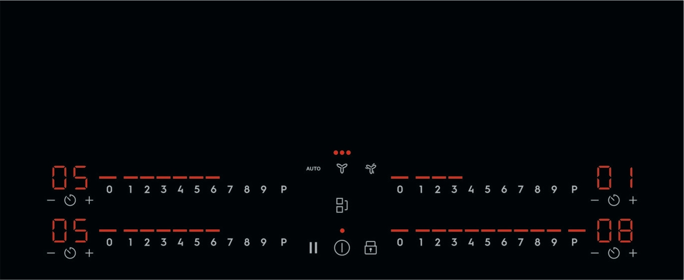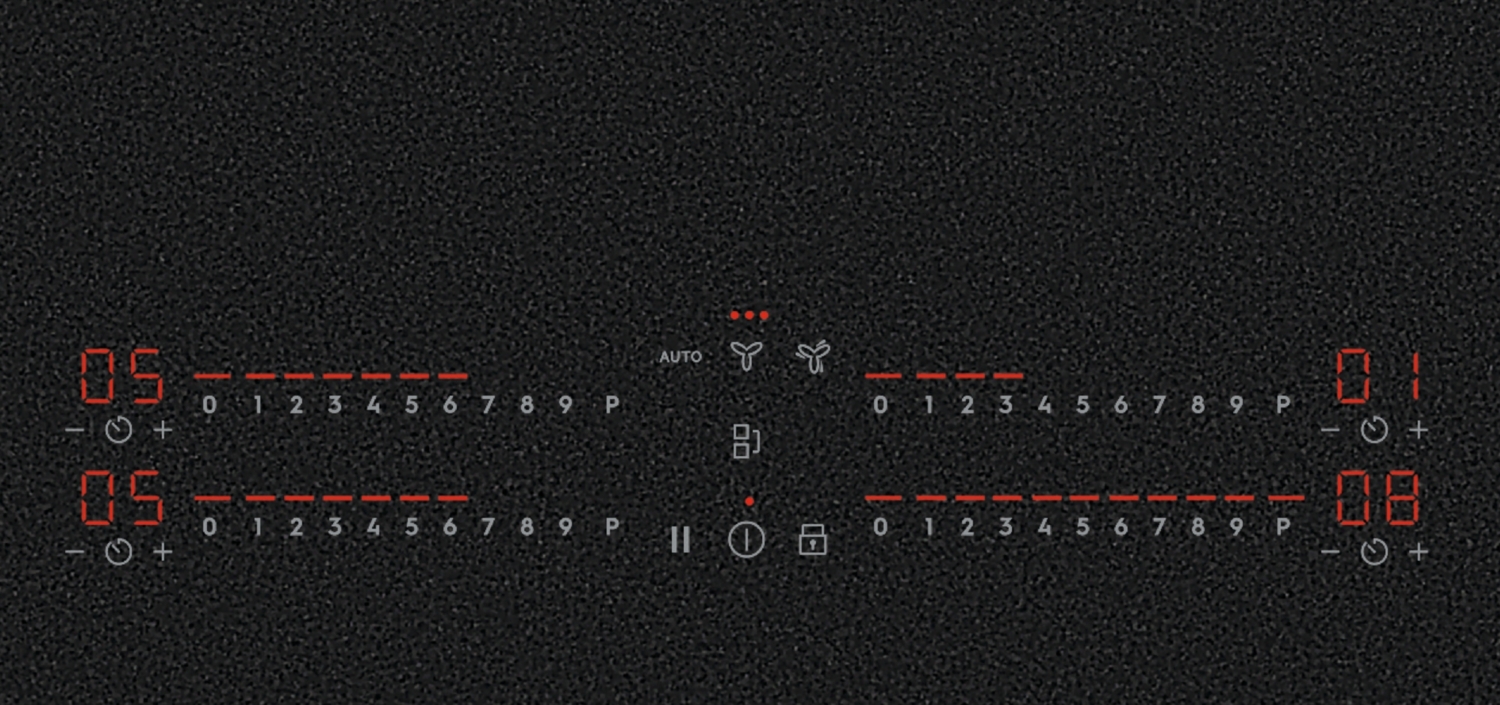 4 отдельных элемента управления позволяют управлять 4 разными конфорками с возможностью установки отдельного таймера. Каждая конфорка поддерживает 9 уровней мощности, а остальные возможности включают функцию «Бустер», систему ActiveTouch, защиту от детей и управление с помощью Hob2Hood.