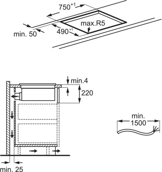 | Размеры для встраивания (ШхГ), мм | 750х490 |