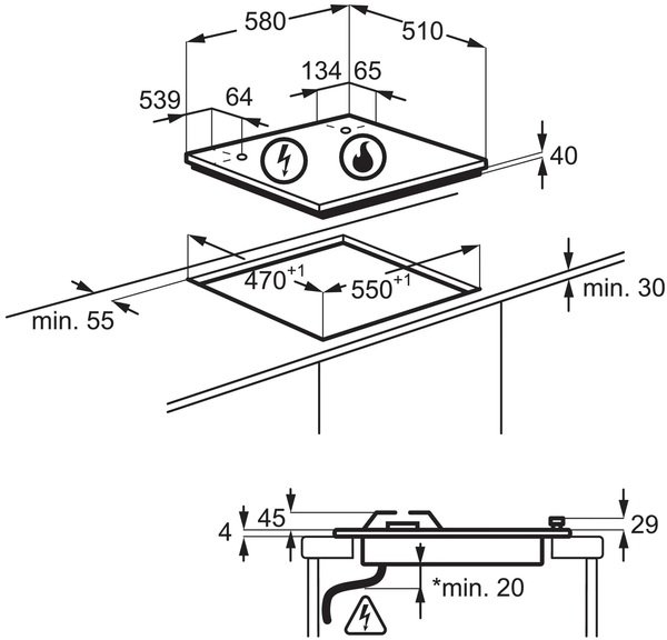 | Размеры для встраивания (ШхГ), мм | 550х470 |