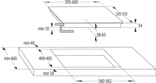 | Размеры для встраивания (ШхГ), мм | 560-562х490 |