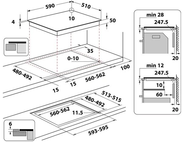 | Размеры для встраивания (ШхГ), мм | 560-562х480 |