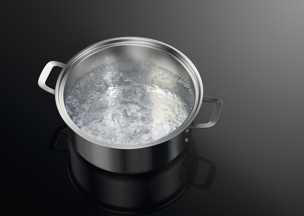 При приближении воды к точке кипения датчик кипения определяет поднимающиеся пузырьки и уменьшает уровень нагрева индукционной варочной панели. Поэтому горячая вода никогда не выкипает.