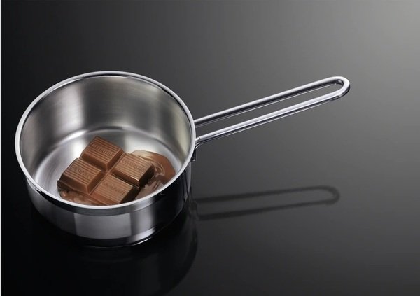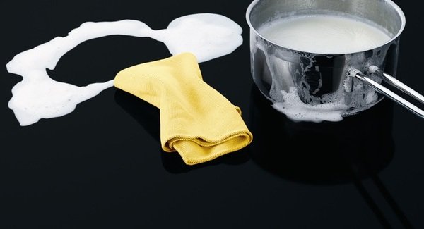 Система индукционного нагрева воздействует только на днище посуды; участки вокруг него остаются холодными на ощупь. А благодаря абсолютной гладкости поверхности ее легко очистить одним движением мокрой тряпки.