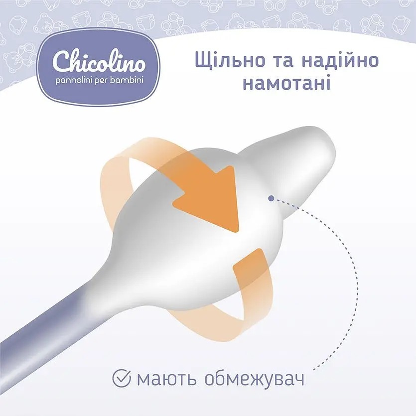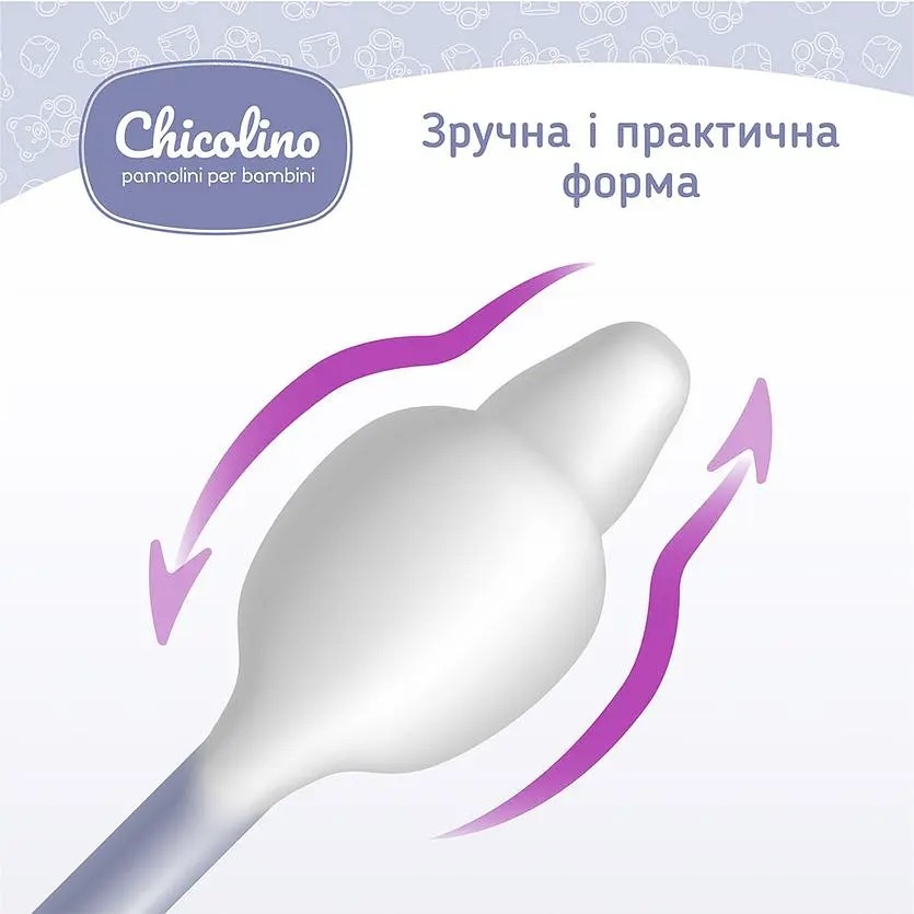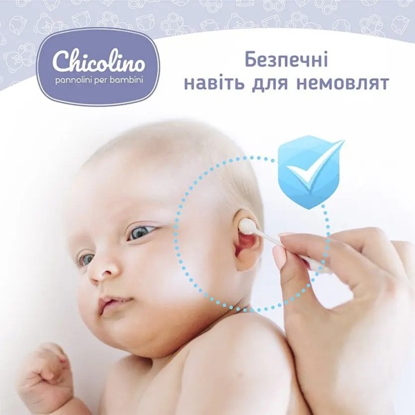 Детские ватные палочки Chicolino с ограничителем предназначены для поддержания гигиены самых маленьких деток и подходят для ежедневного ухода за малышом с первых дней жизни. Ватные палочки оснащены ограничителем для того, чтобы избежать слишком глубокого ввода в носик или ушки малыша. Они изготовлены из качественного натурального и безопасного для здоровья хлопка. Благодаря плотной намотке ваты на гибкий стик палочки сохраняют целостность и гарантируют максимально безопасное и комфортное использование.