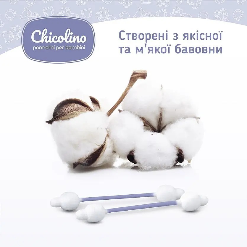 - Детские ватные палочки Chicolino 60 шт
