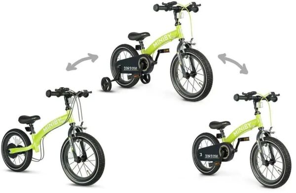 - Три режима: беговел, велосипед со вспомогательными колесами и классический велосипед.