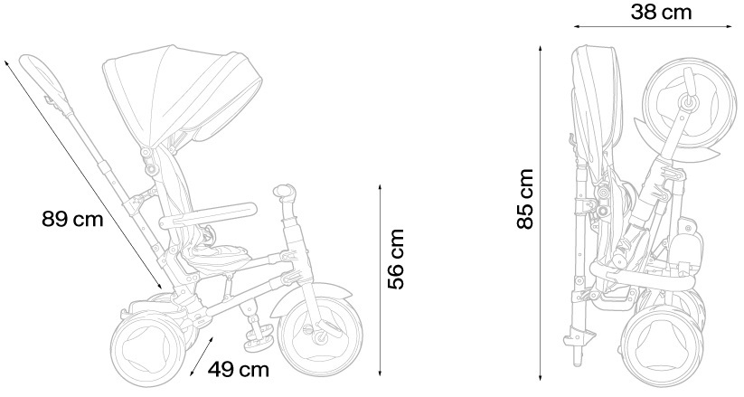Rito - первый трехколесный велосипед в линейке QPlay, сочетающий удобство и мобильность. Благодаря уникальному механизму складывания вам не придется нести его в руках - достаточно просто катить, как тележку.