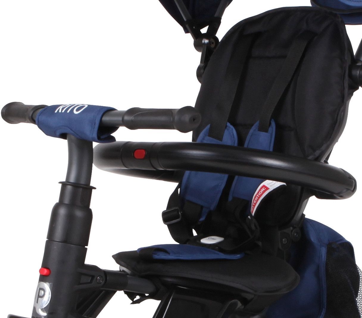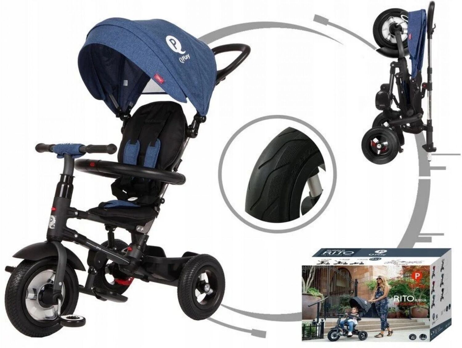 Qplay Rito Rubber - это одна из версий популярной модели Qplay Rito, она оснащена резиновыми колесами и подходит для любых типов дорог, включая неровные поверхности. Складной трехколесный велосипед с родительской ручкой, а после демонтажа ручки, капюшона и чехла сиденья - Rito будет служить как классический трехколесный велосипед.