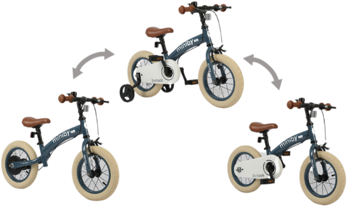 Велосипед-беговел QPlay Miniby имеет три режима катания в одном транспортном средстве, без необходимости менять велосипед для разных возрастных групп. Создан одновременно как беговел, велосипед с дополнительными колесами для тренировки и классический велосипед на 2 колесах. Дети, которые еще не готовы крутить педали, могут использовать его как беговел. Когда они подрастут, QPlay Miniby можно легко превратить в велосипед с тренировочными колесами, которые помогают легко держать равновесие и учиться крутить педали, а в следующем режиме Miniby можно использовать как двухколесный велосипед, просто отсоединив тренировочные колеса.