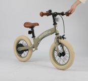 Велосипед-беговел имеет передний ручной тормоз с суппортом и задний тормоз ленточного типа.