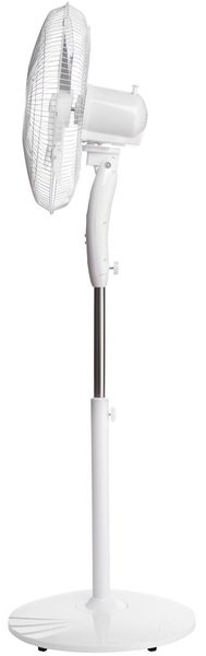 Диаметр лопастей достигает 40 см, а для безопасности используется усиленная конструкция защитной решетки. Надежную установку обеспечивает круглая опора с размером 52 см. В конструкции вентилятора предусмотрена регулировка наклона в пределах 90 градусов, а также регулировка по высоте – от 110 см до 125 см.