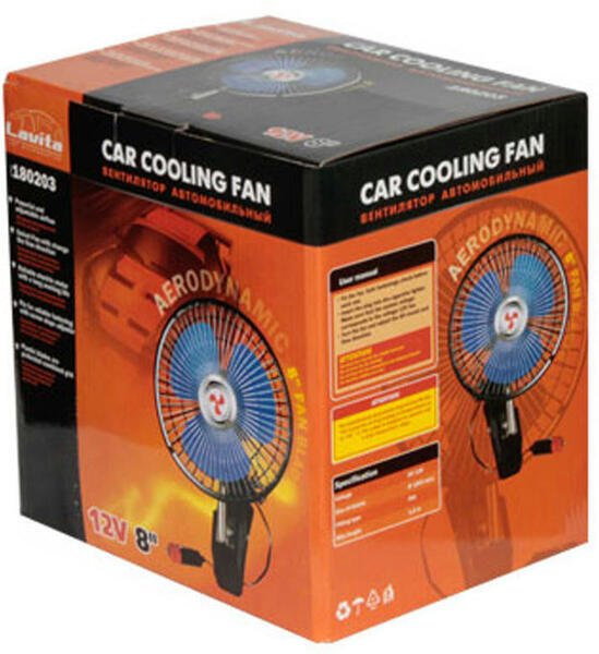 - Вентилятор автомобильный Lavita 8" (20,3см), 12В, поворотный (LA_180203)