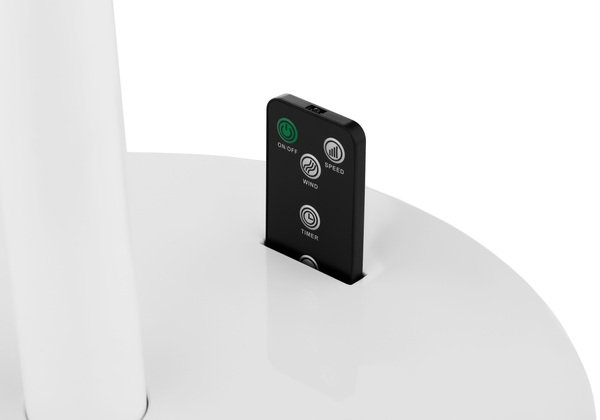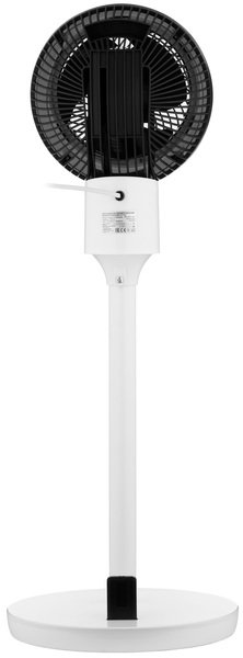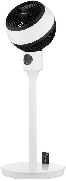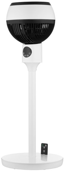 Модель футуристического дизайна изготовлена из надежных, практичных и долговечных материалов – поликарбоната и металла с эмалированным покрытием. Цвет белый, лопасти – чёрные, покрытые чёрной защитной крышкой. Высотой 88 см, довольно легкий – 2,9 кг. Удобное сенсорное управление, есть пульт и LED-дисплей. Предусмотрены три скорости работы, а также три режима обдува. С помощью таймера на 15 ч можно установить необходимый промежуток выключения устройства.