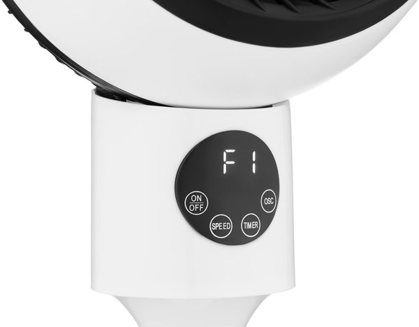 ARDESTO FNT-C880 – напольный вентилятор оригинального футуристического дизайна. Лопасти скрыты под черной защитной крышкой, а основание напоминает увеличенную подставку под микрофон. Вентилятор имеет сенсорный LED-дисплей и пульт дистанционного управления. Изделие имеет три скорости работы вращения лопастей и три предустановленных режима. Таймер на 15 часов и регулируемое вращение в пределах 90º делают устройство комфортным для использования.