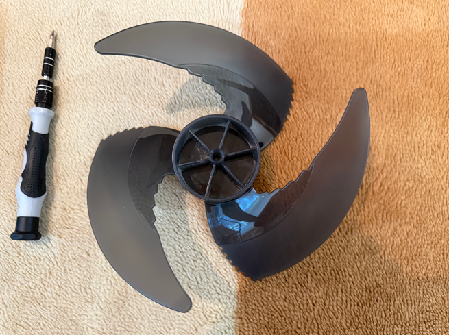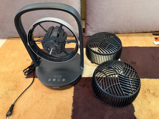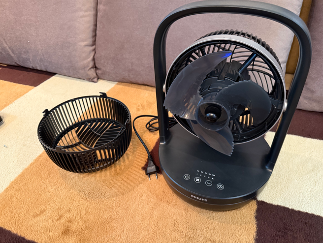 Доповнюю попередній коментар... Місяць користування, все супер!!! Рятує в спекотні дні... Рекомендую до покупки, без всяких вагань!!! Кому цікаво, як його очищати від порохів, то все дуже просто! На фото побачите шурупи, їх потрібно відкрутити вузенькою викруткою, тоді повернути кришку в напрямну ''відчинений замок''... Далі з легкістю можна відкрутити сам пропелер... Кришки знімаються з двох сторін. Вони абсолютно одинакові, тому не переживайте, що переплутаєте перед і зад!)