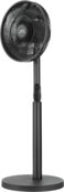 Диаметр устройства составляет 32 см. Телескопическая стойка с регулировкой высоты от 80 до 100 см обеспечивает удобство при использовании. Конструкция предусматривает автоматическое горизонтальное колебание на 140° и ручной наклон до 39°, что помогает создавать комфортный поток воздуха в помещении.