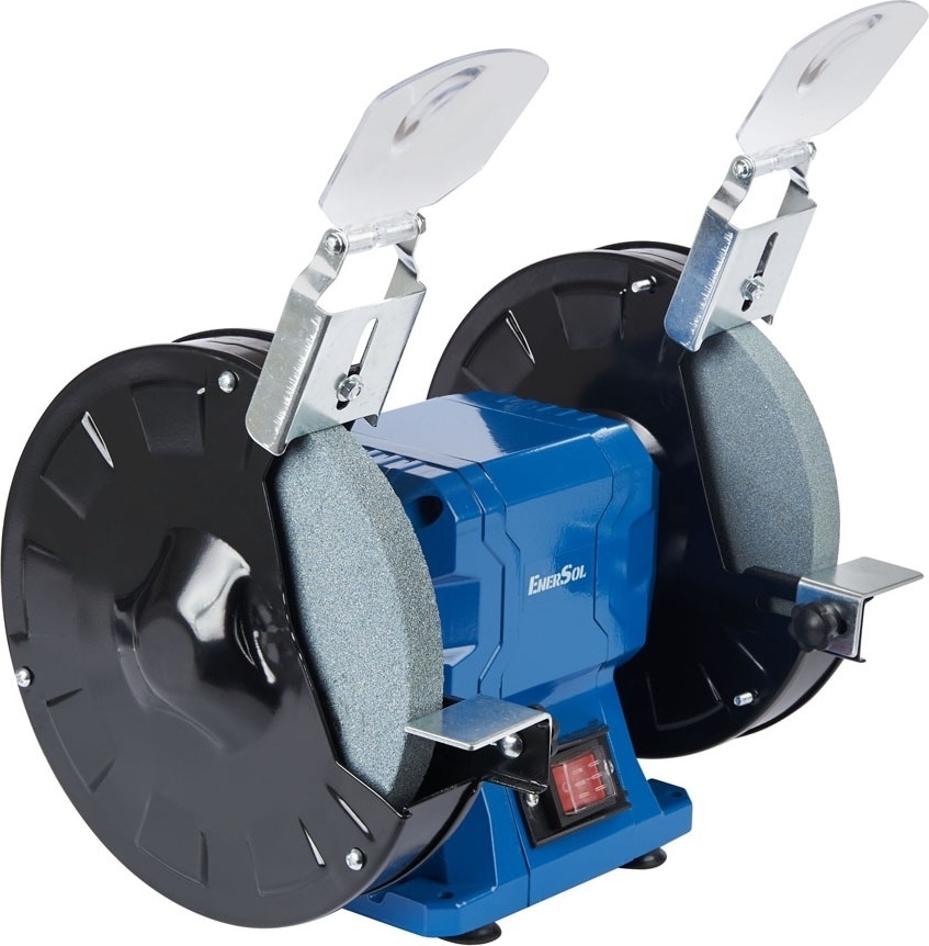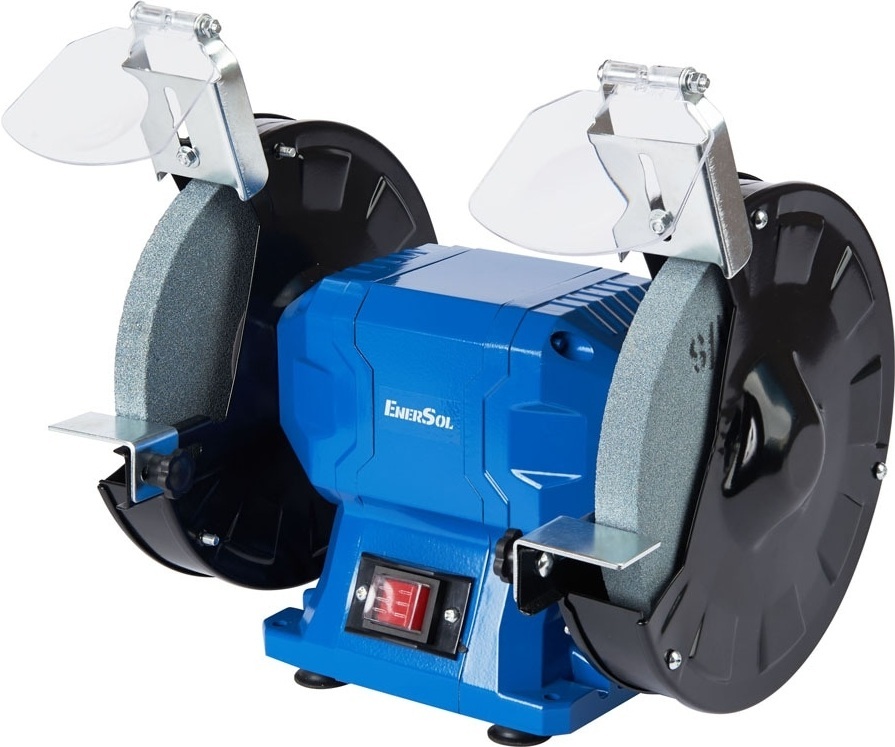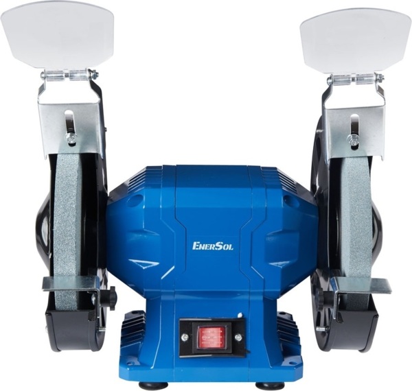 Точильный станок EnerSol EBG-200E оснащен двумя абразивными кругами, что позволяет выполнять как грубую, так и точную шлифовку в зависимости от необходимости.