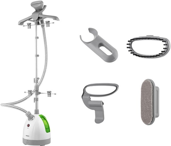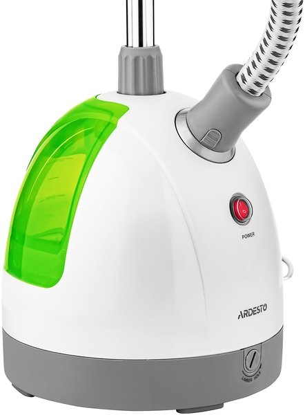 Отпариватель ARDESTO выполнен в элегантном белом цвете, своеобразный акцент – зеленоватый резервуар для воды. Объем емкости составляет 1 500 мл, поэтому не нужно после глажки каждой вещи доливать воду – экономия времени и усилий. Мощность модели составляет 1 785 Вт. Постоянная подача пара – 30 г/мин. Удобство и свободу движений обеспечивает шланг длиной 1,6 м.