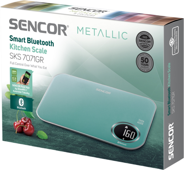 Весы оснащены беспроводной технологией Bluetooth, которая вместе с приложением Sencor Food, установленным на вашем смарт-устройстве, обеспечивает прямой доступ к обширной и регулярно обновляемой базе данных ингредиентов и их питательной ценности.