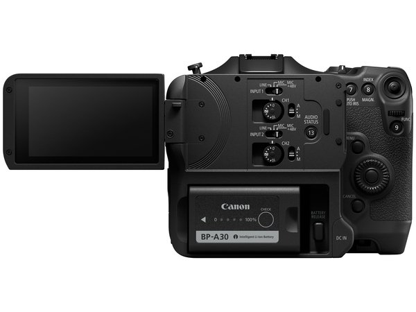 Два диска управления звуком расположены на задней панели камеры и позволяют свободно управлять уровнями записи звука. В качестве источника входного сигнала можно выбрать линейный вход, встроенный стереомикрофон или один из двух микрофонов XLR — это до 4 каналов входного звукового сигнала.