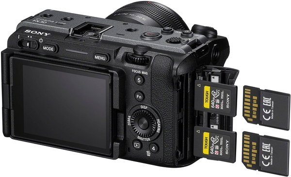 В камере имеется два слота для носителей: они совместимые как с картами памяти CFexpress Type A, так и с картами SDXC и SDHC, поддерживающими классы скорости передачи данных UHS-I и UHS-II. Карты CFexpress Type A — это новый стандарт компактных устройств хранения данных. Благодаря высокой скорости записи и чтения данных эти карты можно использовать для записи видеороликов 4K с высокими скоростями потока данных. Благодаря двум слотам запись можно вести одновременно на оба носителя или переводить поток данных после заполнения одного из них.