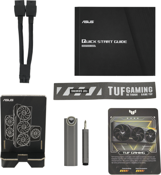 В комплект видеокарты входит держатель для ее надежного закрепления, а также отвертка, которая поможет вам в сборке системы.