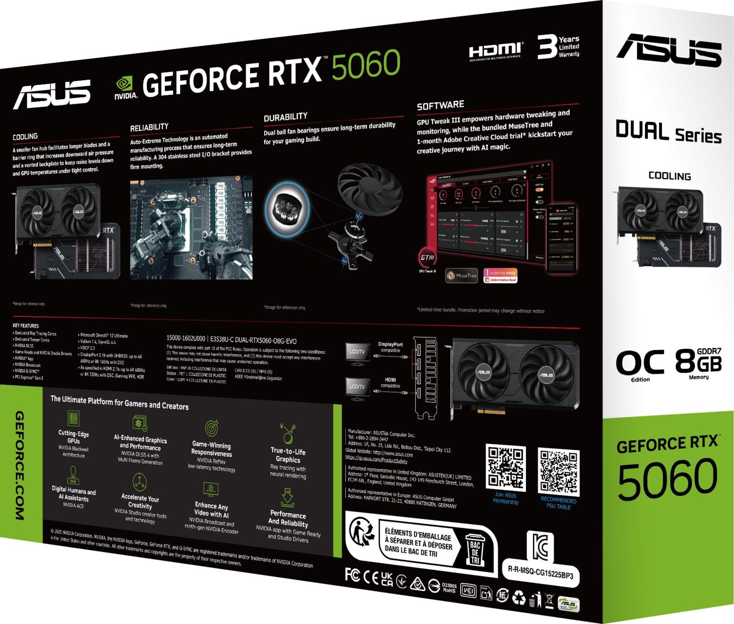- Видеокарта ASUS GeForce RTX 5060 8GB GDDR7 OC EVO DUAL-RTX5060-O8G-EVO (90YV0NS0-M0NB00)