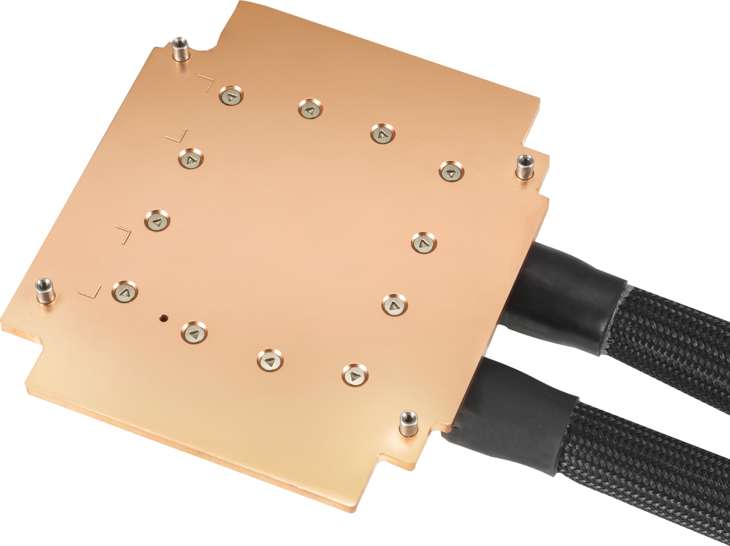 Большая термопластина покрывает все компоненты печатной платы, выделяющие тепло, позволяя радиатору более эффективно охлаждать видеокарту. Такое решение обеспечивает повышение эффективности до 30% по сравнению с воздушным охлаждением.