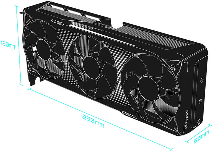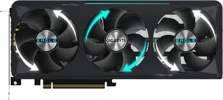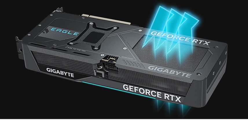 Система охлаждения WINDFORCE обеспечивает исключительную тепловую эффективность благодаря сочетанию передовых технологий. Она включает в себя теплопроводящий гель серверного класса, инновационные вентиляторы Hawk с чередующимся вращением, композитные медные тепловые трубки, медную пластину, 3D-вентиляторы и охлаждение экрана.